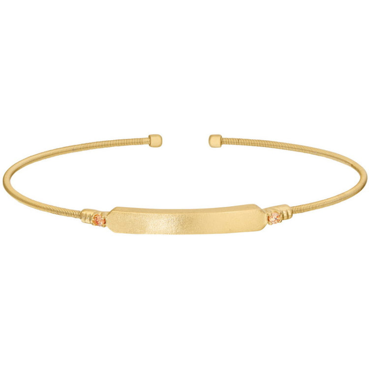 Gold finish sterling silver cable cuff bracelet with name plate and simulated citrine birth gems - november