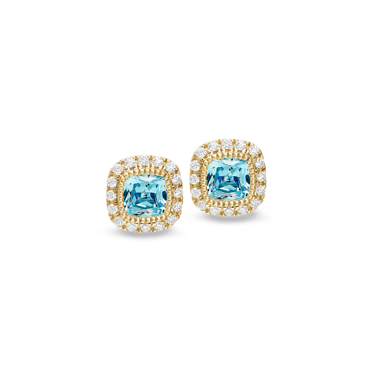 Gold finish sterling silver micropave simulated aqua marine earrings with simulated diamonds