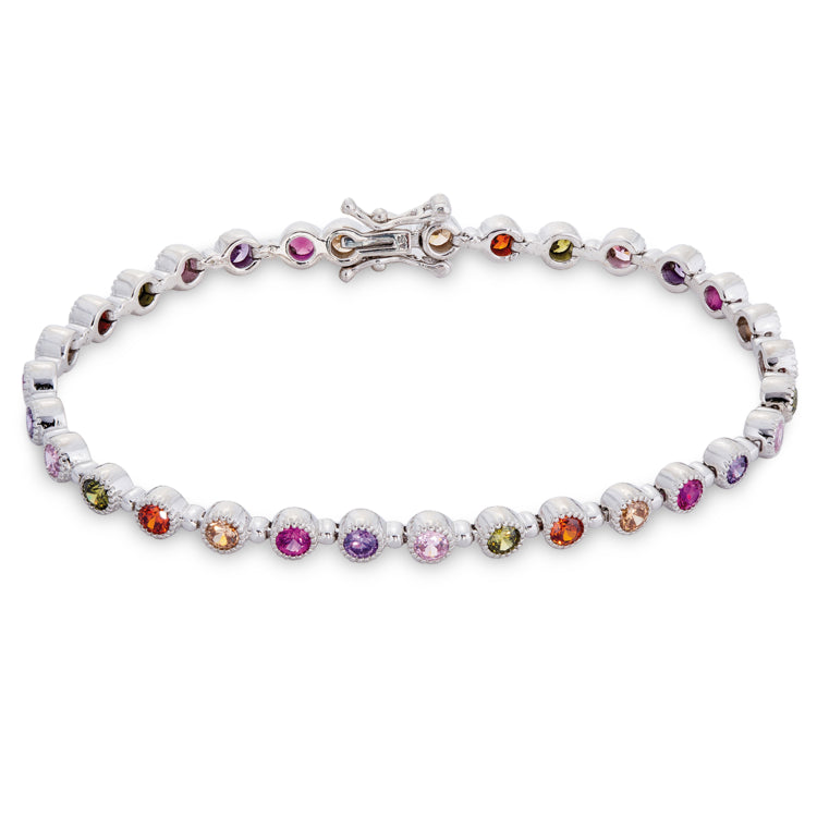 Platinum finished sterling silver colored stone bracelet 7.25
