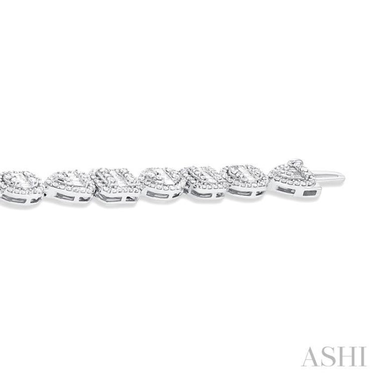 3 1/5 ctw Mixed Shape Halo Fusion Baguette and Round Cut Diamond Bracelet in 14K White Gold